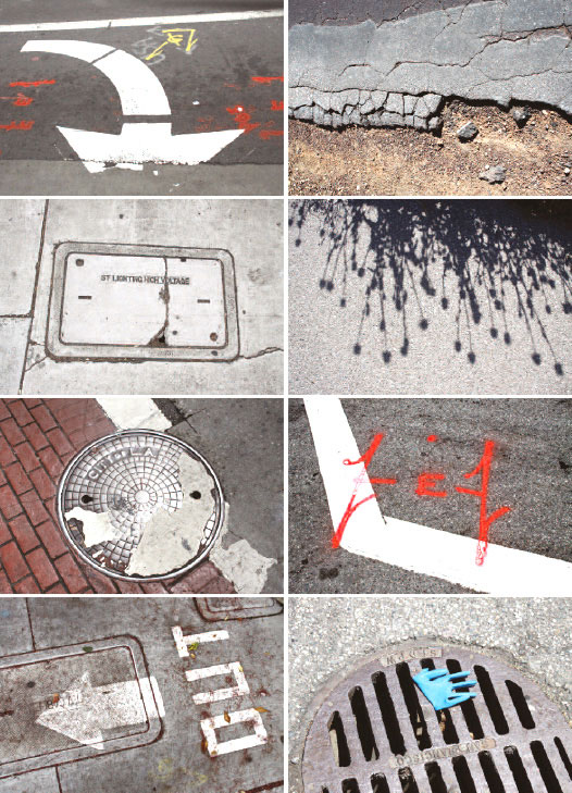 Farbe und Oberflächenbeschaffenheit urbanen Asphalts bilden die fotografische Grundlage der „Streetpaintings“.